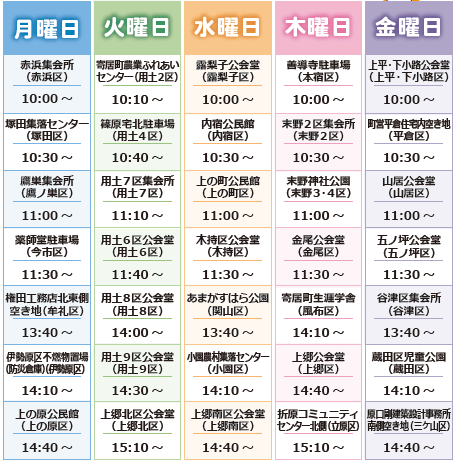 月曜日から金曜日までの午前10時ごろから午後4時ごろまで週5日間の運行で、町内35カ所を巡ります。