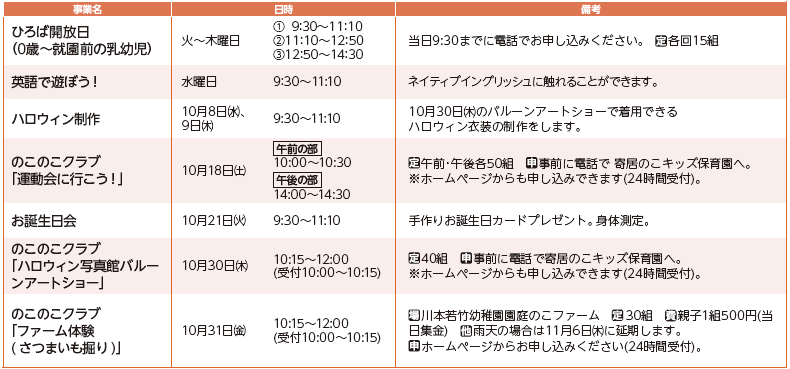 問合せ:寄居のこキッズ保育園(露梨子411-1(寄居若竹幼稚園南))