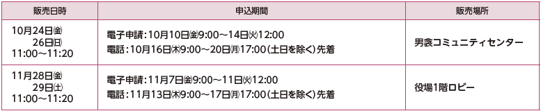 購入方法:整理券を当日午前10時25分から配布します。整理券がなくなり次第、販売終了となります。