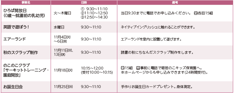 問合せ:寄居のこキッズ保育園(露梨子411-1(寄居若竹幼稚園南))【電話】581-0885