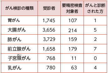 がん検診を受診して「要精密検査」という結果が届くと不安に感じる方が多いと思います。「要精密検査」は、治療が必要かどうかを確認するために、より詳しい検査が必要ということです。実際、精密検査対象者の中で、がんと診断された方は少数です(下表参照)。