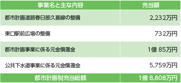都市計画税は、良好な市街地を形成するために、下水道、道路、公園などの生活に密着した都市計画事業や土地区画整理事業に活用するための目的税です。令和6年度は以下の事業に充当しました。