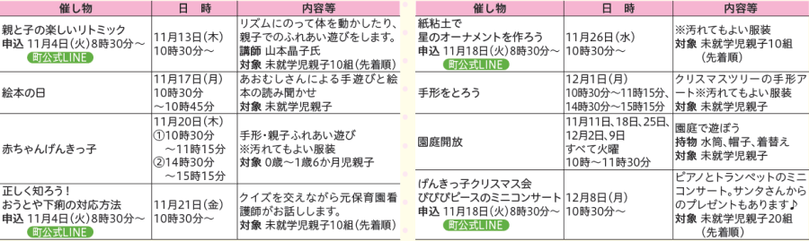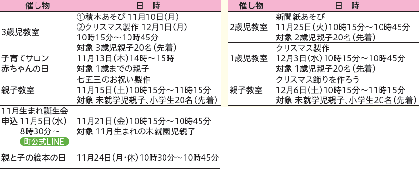 申込み:11月5日(水)8時30分〜〔町公式LINE〕