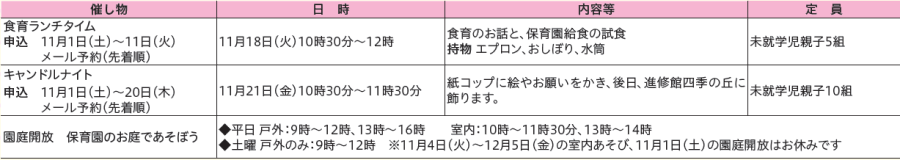 ・11月19日(水)、12月5日(金)、6日(土)は園行事のためお休みです。