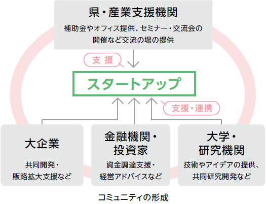 県では、今年度から本格的なスタートアップ支援事業を開始。スタートアップや起業を目指す方、大企業、投資家などによる交流イベントを定期的に開催しコミュニティ形成を支援することで、スタートアップの創出やビジネスを成長させるための環境づくりに取り組みます。