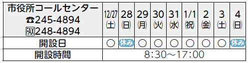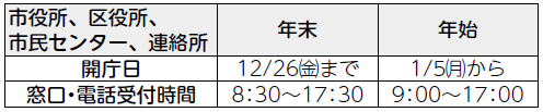 *1月5日(月曜日)から市役所、区役所などの窓口・電話受付時間が変わります。