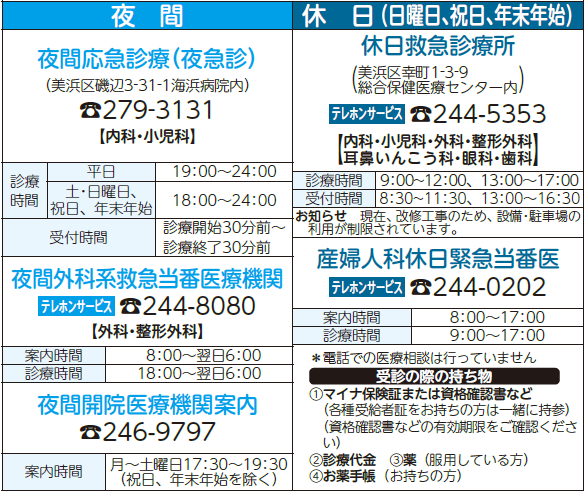 1月1日(祝)は次の医療機関で応急診療を行っています。