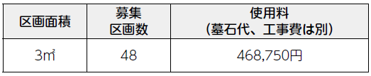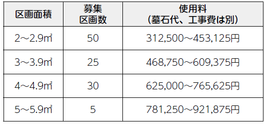 *いずれも墓地管理料金…5,020円。複数の申し込み不可。