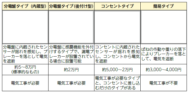 いざという時に備えて、地震を感知すると自動的にブレーカーを落とし、電気を遮断する感震ブレーカーを設置しましょう。
