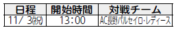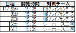 日時:11月8日(土曜日)14時・9日(日曜日)13時開始・対長野GaRons