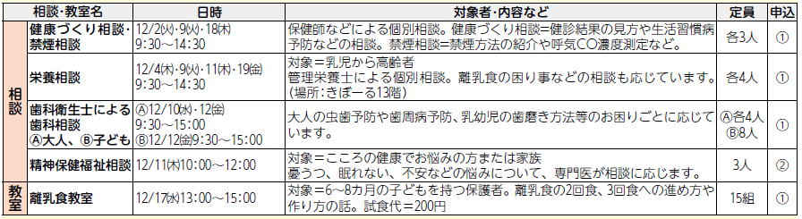 申込方法:12月1日(月曜日)9時から電話で、中央保健福祉センター健康課各班へ