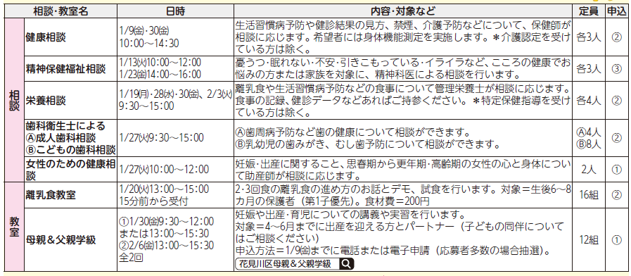 申込方法:1月5日(月曜日)9時から電話で、花見川保健福祉センター健康課各班へ