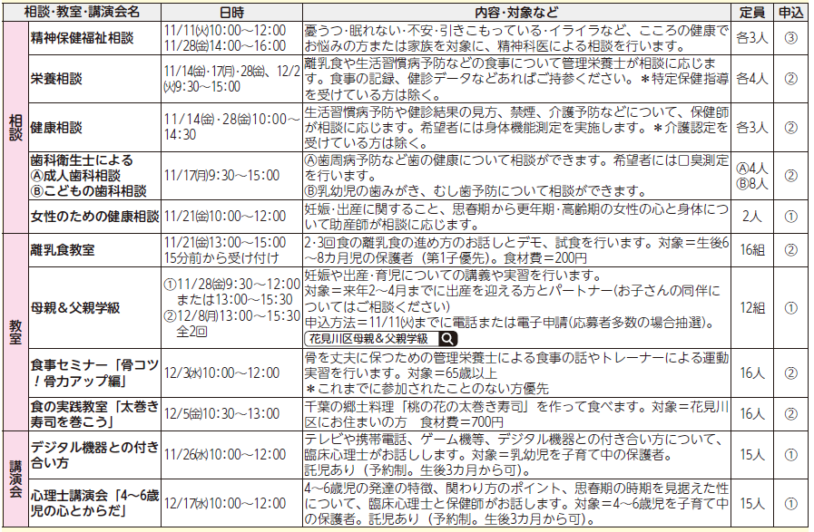 申込方法:11月4日(火曜日)9時から電話で、花見川保健福祉センター健康課各班へ