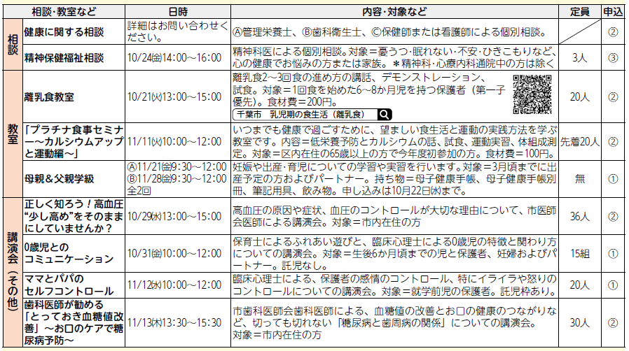 稲毛保健福祉センター健康課では、健康に関する相談や教室などを開催しています。