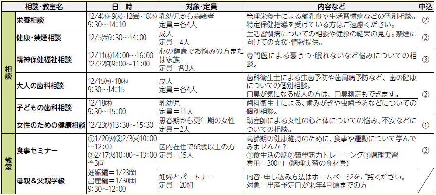 申込方法:12月1日(月曜日)9時から電話で、若葉保健福祉センター健康課各班へ