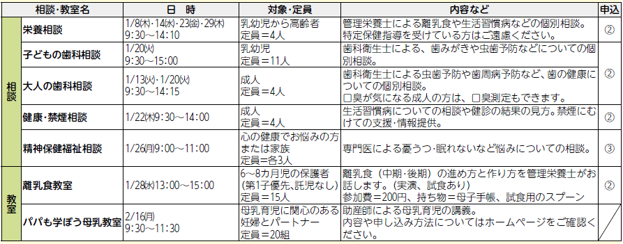 申込方法:1月5日(月曜日)9時から電話で、若葉保健福祉センター健康課各班へ
