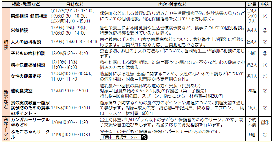 詳しくは、「千葉市 緑区健康課」で検索
