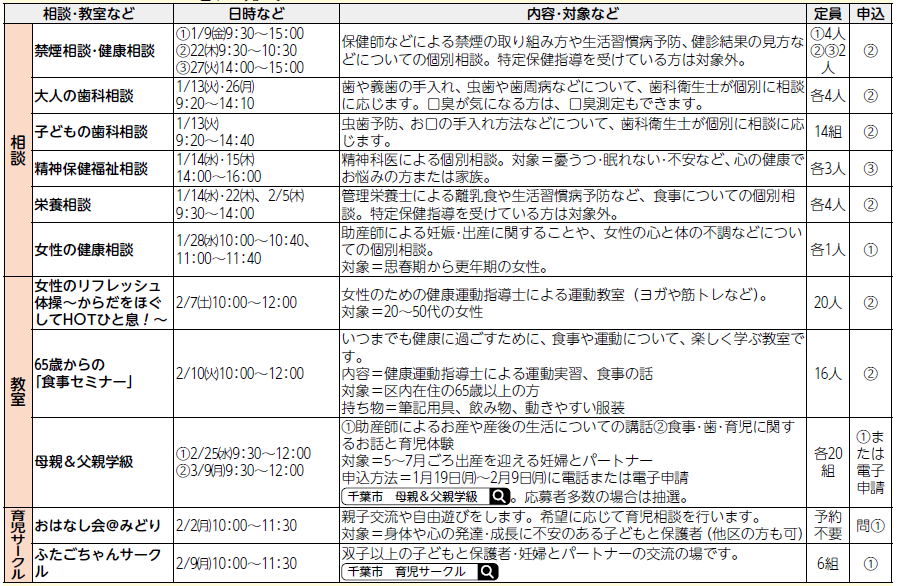 申込方法:1月5日(月曜日)9時から電話で、緑保健福祉センター健康課各班へ