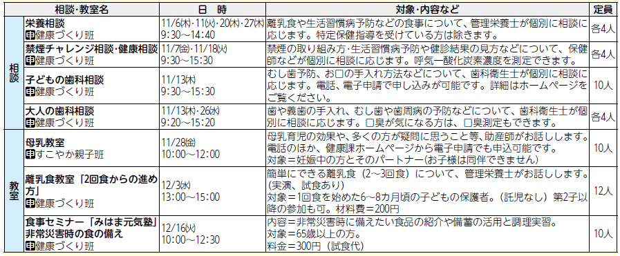 申込方法:11月4日(火曜日)9時から美浜保健福祉センター健康課各班へ。
