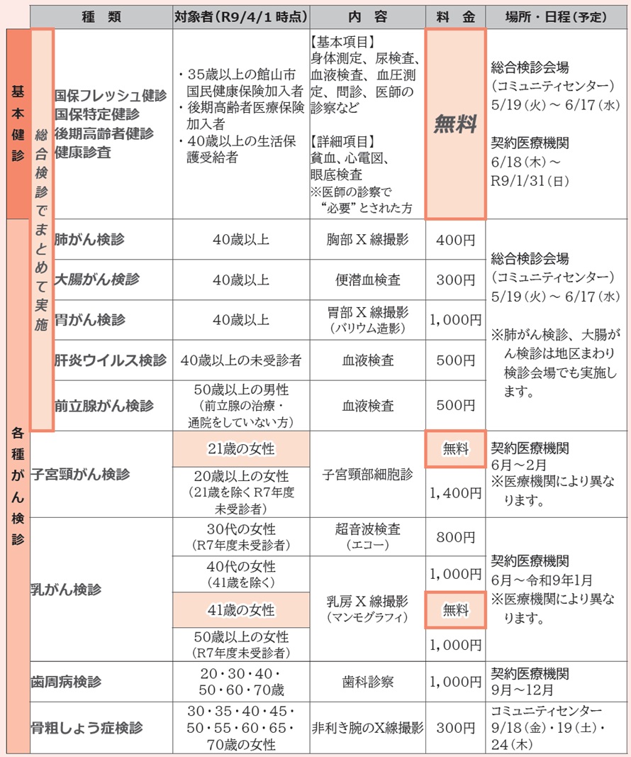 ・基本健診については、館山市国民健康保険・後期高齢者医療保険に加入している35歳~80歳までの方
