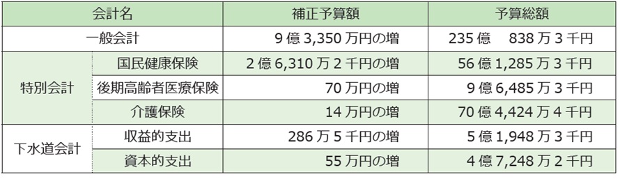 年度途中に生じた災害や法律改正など、当初予算では想定できなかった事態に対応するため、変更を加える予算です。