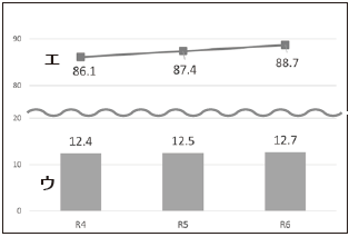 ウ.普及率…住民基本台帳の人口のうち、処理区域内の人口割合