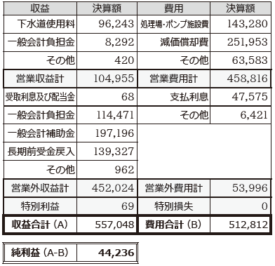 資本的収支:将来の営業活動に備えて行う下水道施設の建設改良費等の費用や、その財源となる収入を表したもの。