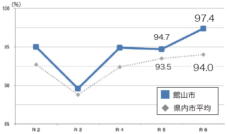 経常収支比率 ※この比率が高くなるほど「柔軟性に乏しい」とされています。