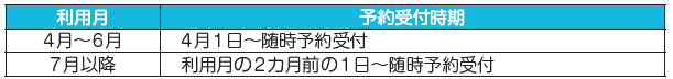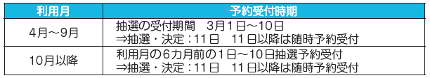 4月以降の施設予約については、利用者の区分ごとに、予約受付の時期が異なりますのでご注意ください。