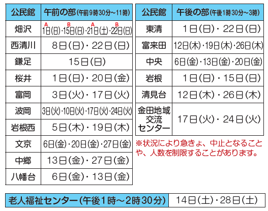 ※畑沢公民館は参加者多数につき、参加人数を調整しています。生まれ月を確認し、参加してください。