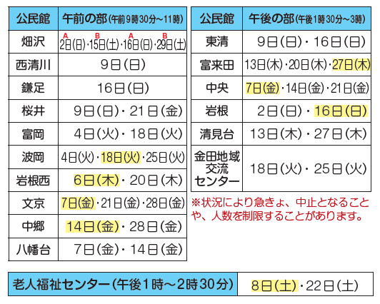 ※畑沢公民館は参加者多数につき、参加人数を調整しています。生まれ月を確認し、参加してください。