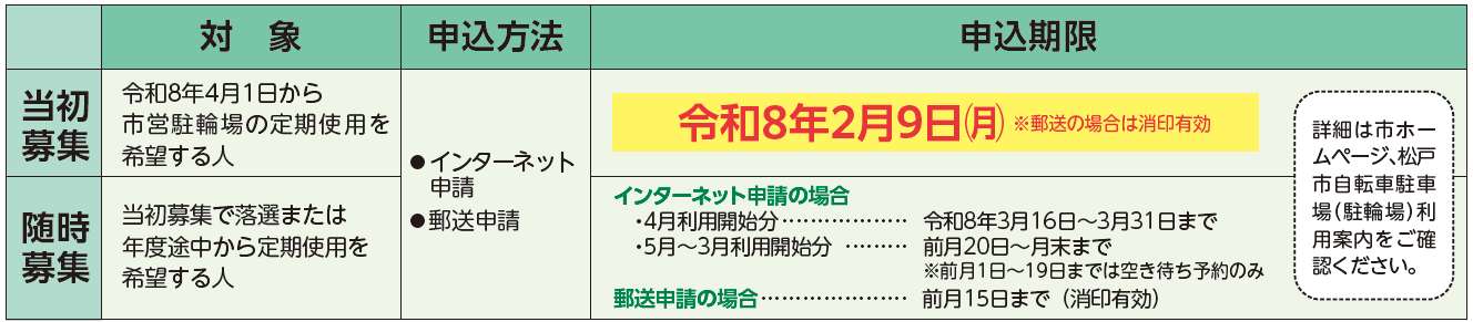※新松戸駅東口第1自転車駐車場の申請方法、申請時期は異なりますので、市ホームページにて改めてご案内いたします。