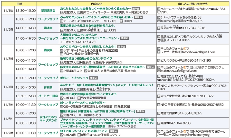 男女共同参画社会の実現に向けて、さまざまなイベントを開催します。