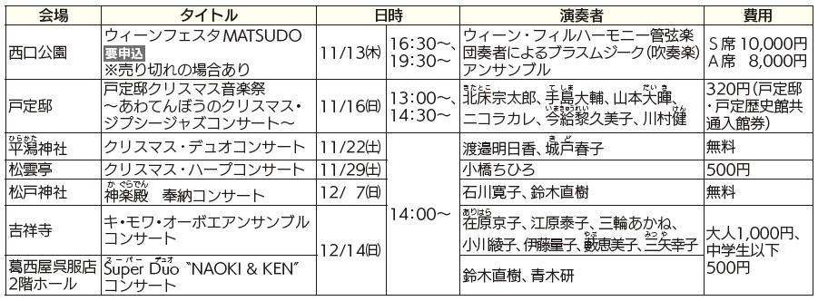松戸駅周辺の飲食店や社寺、コンサートホールなどで演奏会を開催します。音楽のまち松戸でクリスマスの雰囲気をお楽しみください。