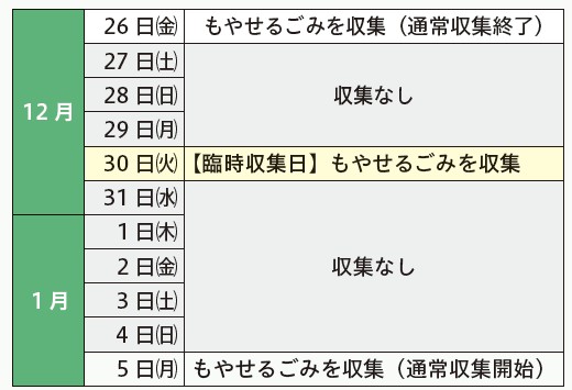 ※臨時収集日は、通常と異なる時間帯に収集される場合があります