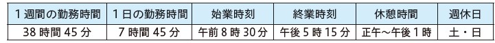 ※出先機関や施設などの勤務時間・週休日は、上記と異なる場合あり