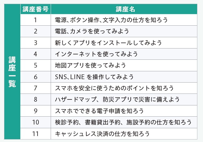 その一環として、高齢のかた向けに、電話のかけ方などの基本的な操作から、電子申請などの応用的なものまで、幅広いレベルに応じたスマートフォン講習会を実施しています。ぜひご参加ください。