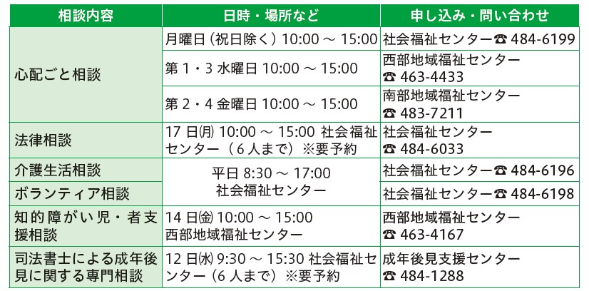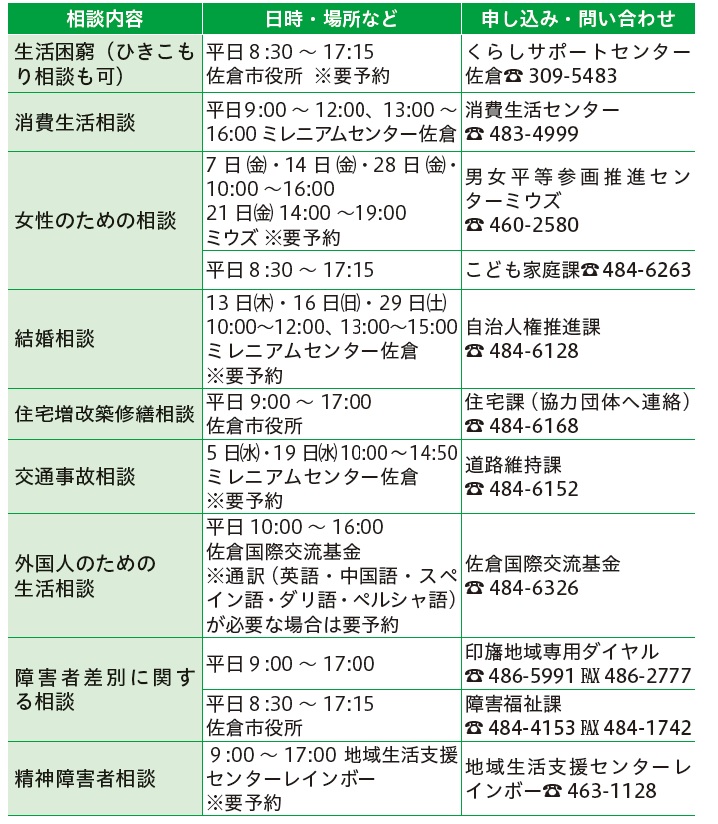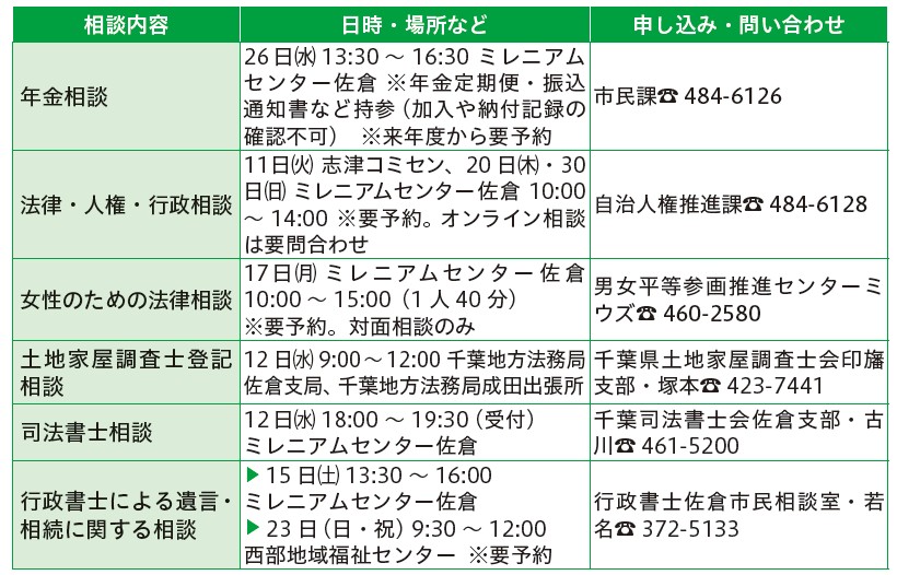 くらし 暮らしの相談 ※記載のないものは予約不要 17/28 前の記事 次の記事 発行日 : 2025年11月01日 自治体名 : 千葉県佐倉市 広報紙名 : こうほう佐倉 2025年11月1日号(1464号) ■生活に関する相談 ■子ども・育児・教育 ■仕事に関する相談 ※対象など詳細はお問い合わせください ■年金・法律など ■社会福祉協議会の福祉相談 Tweet シェアする 情報のひろばーお知らせ(2) 移動交番【11月の開設情報】