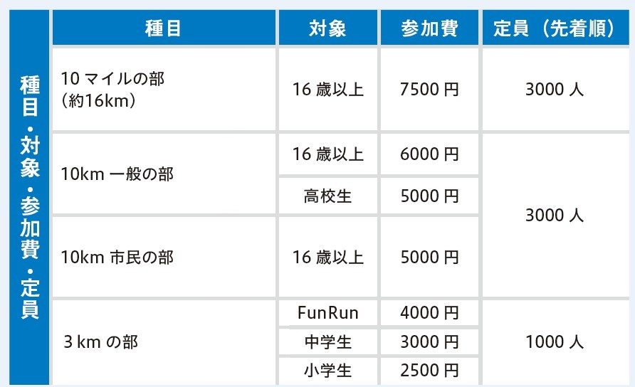 対象:大会ルールを遵守し、該当距離を制限時間内に完走できる能力のある健康なかた