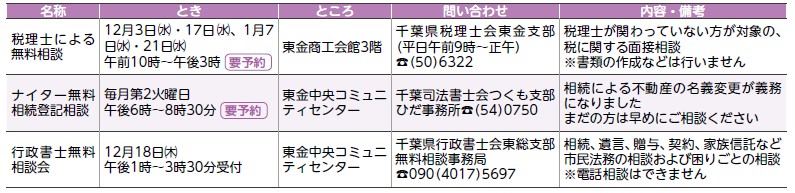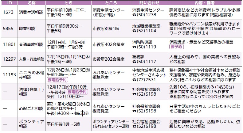 ※行政相談も併せて行います。定例の相談は下表をご覧ください。