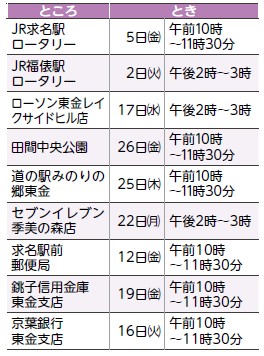 ◆今月の移動交番 開設予定