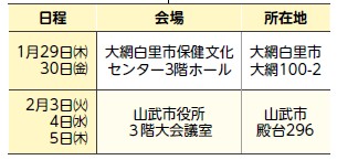 日時:下表の午前9時30分~正午、午後1時~4時