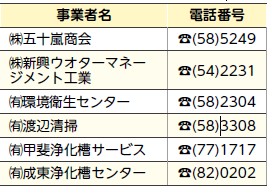 快適な生活環境を維持するため、左表の許可業者に依頼して、定期的な浄化槽の清掃をお願いします。