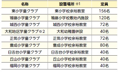 ※1…土曜日は合同保育を実施しているため、保育場所が他の学童クラブになる場合があります。