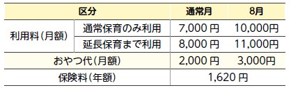 利用時間:午前8時~午後6時(延長保育を利用する場合は午後7時まで)