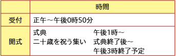 日時:1月12日(月祝)成人の日