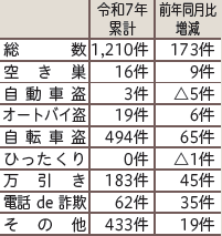 くらし 習志野市内の犯罪と交通事故の発生状況 20/28 前の記事 次の記事 記事を読み上げる 発行日 : 2026年01月15日 自治体名 : 千葉県習志野市 広報紙名 : 広報習志野 令和8年1月15日号 習志野警察署調べ ■犯罪(刑法犯) ■交通事故 令和7年11月末現在(速報値) 問合せ:習志野警察署 【電話】047-474-0110 Tweet シェアする 交通安全まめ知識 お知らせBOXー市役所からー