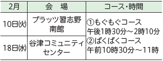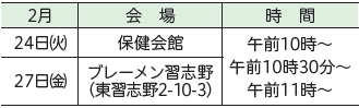 日時:(1)2月12日(木)の午後、(2)3月11日(水)の午前
