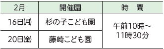問合せ:各開催園またはこども保育課