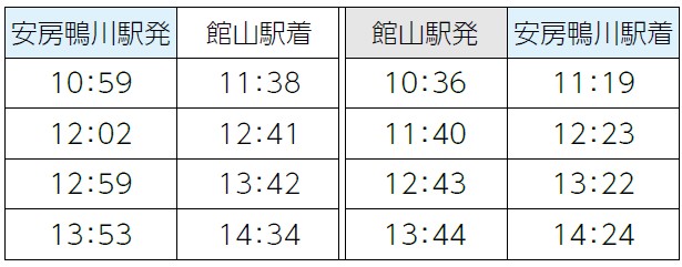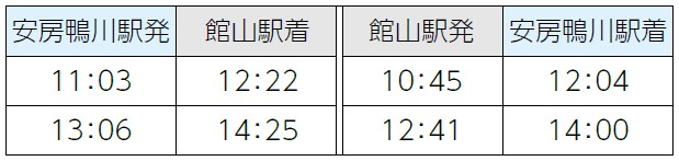 ・上り(安房鴨川駅→館山駅)・下り(館山駅→安房鴨川駅)